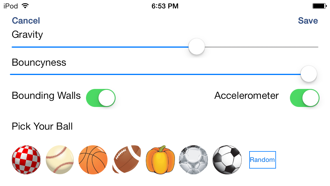 Bouncing balls of all kinds, all over the screen. Open source app, get the code at https://github.com/dflax/amazeballs
